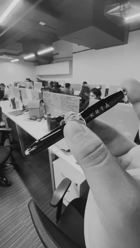 "Featured on the hit TVF show Kota Factory, the Krta Fidget Pen has garnered attention for its innovative design and stress-relieving capabilities. Engineered for precision and crafted with comfort in mind, this sleek pen doubles as a stress-relief tool. With clickable buttons, tactile textures, and smooth spinners, it keeps your hands busy and your mind focused. Say hello to productivity and relaxation – grab your Krta Fidget Pen now!"